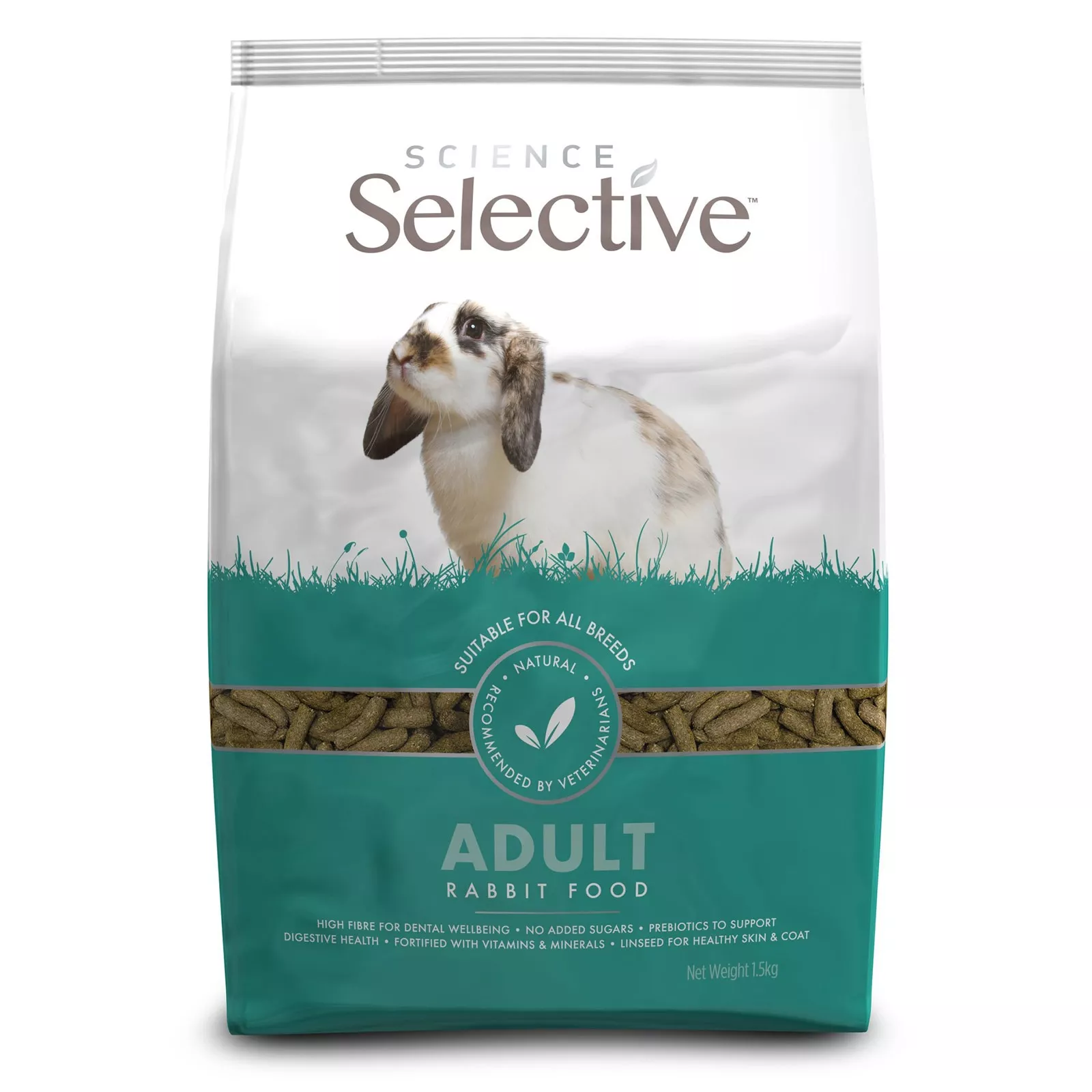 Hrana pentru iepuri bogata in fibre și prebiotice – Adult face parte din gama Science Selective. Acesta firma are cea mai larga gama de alimente recomandate de veterinari pentru animalele de companie mici și este din UK. Hrana pentru iepuri adulti de la Science Selective este bogata in fibre brute naturale (25%) si calciu echilibrat, astfel incat puteti fi siguri ca oferiti iepurilor dvs. o dieta gustoasa si naturala care ii va mentine in cea mai buna stare de sanatate.