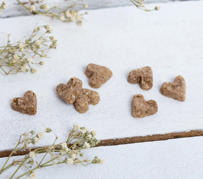 Fiecare biscuite în formă de inimă este îmbogățit cu aroma intensă și proaspătă a cimbrului, oferind o experiență gustativă delicioasă. Aceste recompense pot fi oferite ca o gustare hrănitoare între mesele principale. Cimbrul este una dintre cele mai cunoscute plante medicinale, recunoscută pentru proprietățile sale benefice pentru sănătate. Este o plantă deosebit de versatilă, cunoscută pentru efectele sale pozitive asupra digestiei și a sistemului gastrointestinal. Gustul inconfundabil al cimbrului adaugă o notă ușor picantă și dulce recompenselor pentru rozătoare. Oferindu-i aceste recompense cu cimbru, îi oferi nu doar o gustare plăcută, ci și beneficiile naturale ale acestei plante minunate. Îți poți arăta afecțiunea și îngrijirea, oferindu-i aceste recompense naturale și sănătoase pentru un răsfăț adițional.