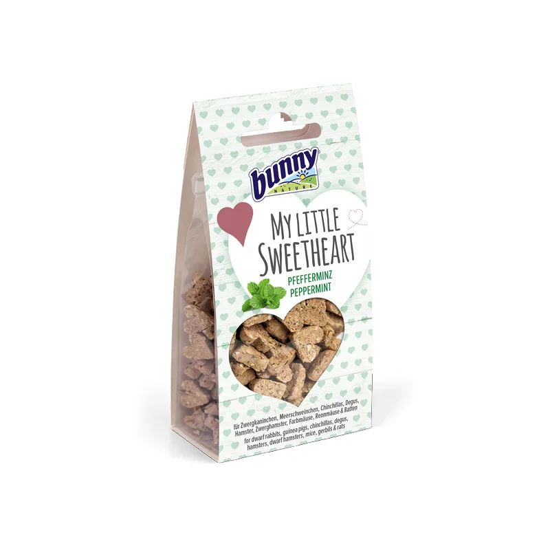Recompense naturale cu menta My Little Sweetheart de la Bunny Nature, sunt o alegere perfectă pentru a răsfăța micul tău rozător. Aceste delicioase gustări în formă de inimă sunt concepute special pentru a-i încânta pe micuții tăi prieteni. Un ingredient special din compoziția lor este menta aromatică.