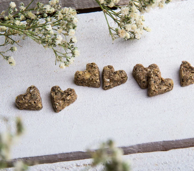 Fiecare biscuite în formă de inimă este îmbogățit cu aroma proaspătă și vibrantă a papadiei, oferind o experiență gustativă delicioasă. Aceste recompense pot fi oferite ca o gustare hrănitoare între mesele principale. Papadia este o plantă recunoscută pentru proprietățile sale detoxifiante și diuretice. Gustul unic al papadiei adaugă o notă ușor amară și revigorantă recompenselor pentru rozătoare. Oferindu-i aceste recompense naturale cu papadie, îi oferi nu doar o gustare plăcută, ci și beneficiile naturale ale acestei plante minunate.